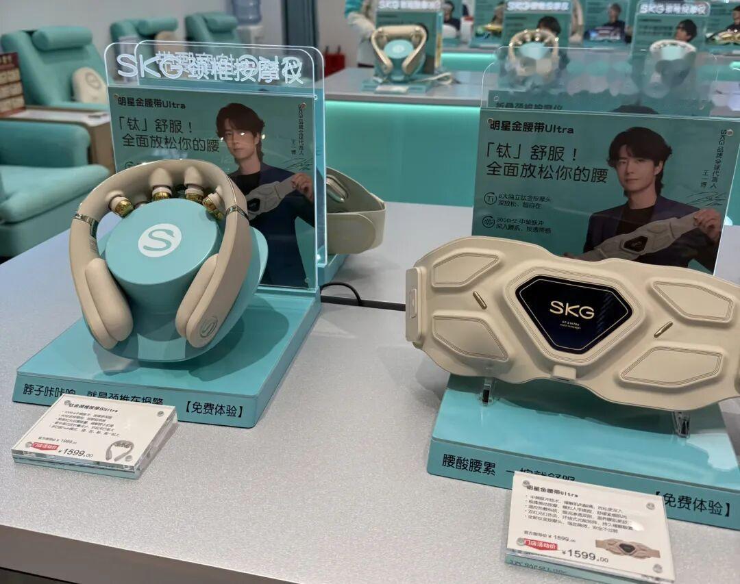 2018年,SKG第一款穿戴式便携颈椎按摩仪面世,轻便、美观的“挂脖儿”按摩仪一下子拿捏住了肩颈常酸痛的都市打工人,利用明星、广告以及多平台结合的流量打法一举走向行业头部。