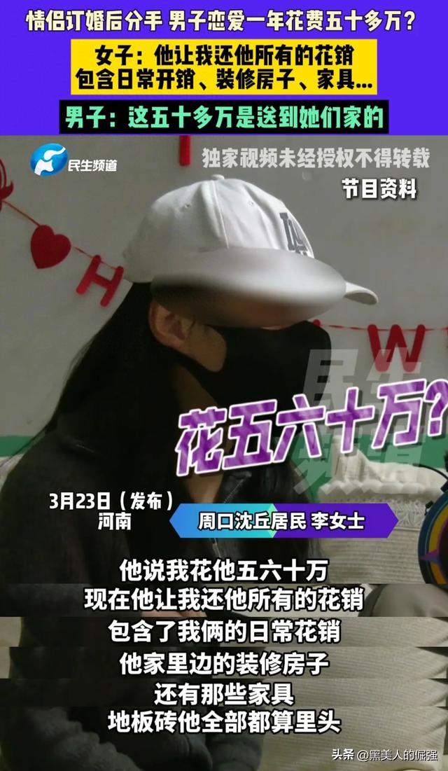 李女士的说法是,这五十多万并不是全花在了她身上,这里面包含了两人的日常花销,王先生家里的装修费用,还有王先生家里买的家具,她认为这部分不该由她承担。