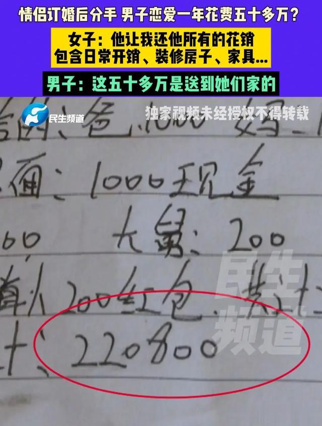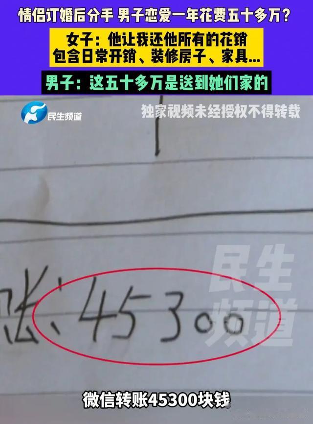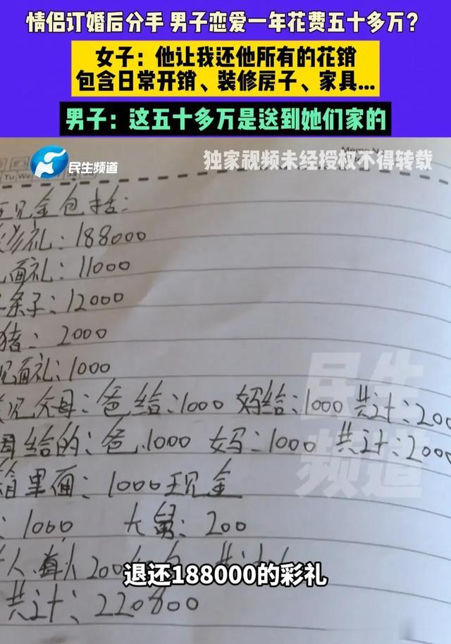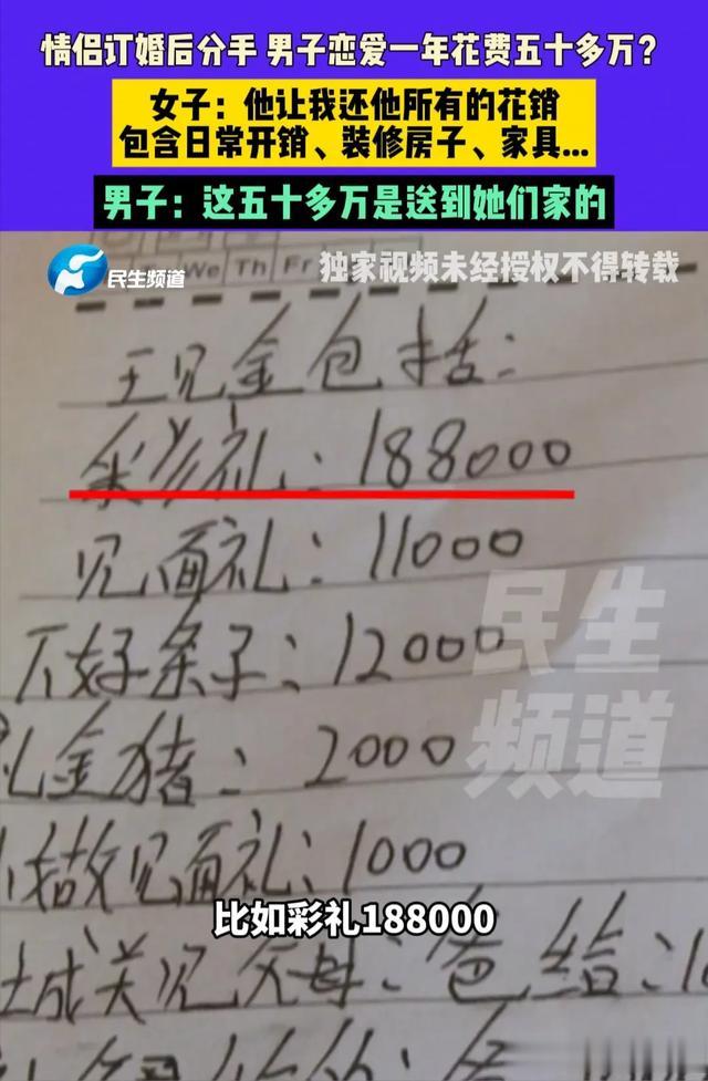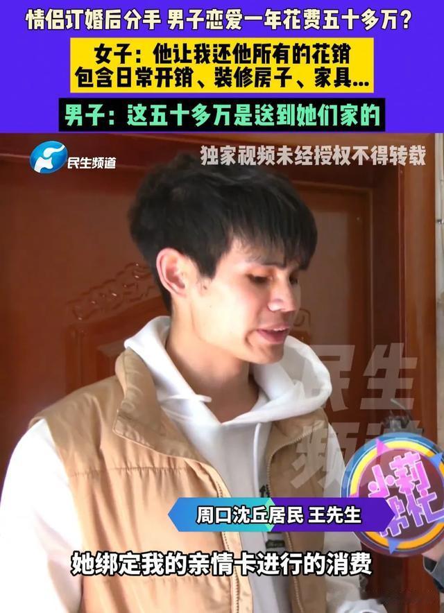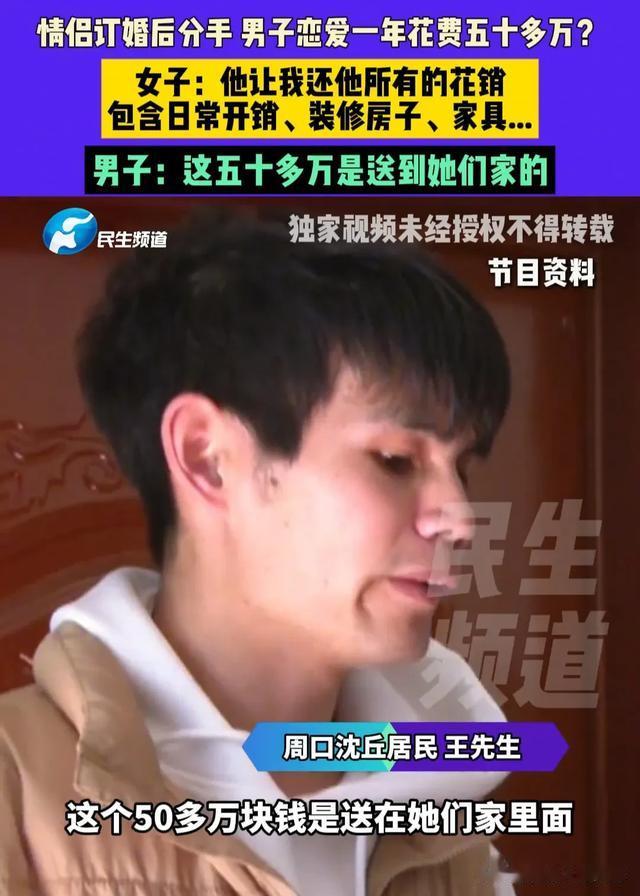 谈恋爱是真费钱啊,河南的王先生谈了一年恋爱竟然花了50多万,关键这50多万花出去了,人却还没娶回家,如今两人闹掰,王先生看着这50多万的花销心疼得直打哆嗦,追着女方要求归还这50多万的花销,可女方却并不认同王先生的要求。