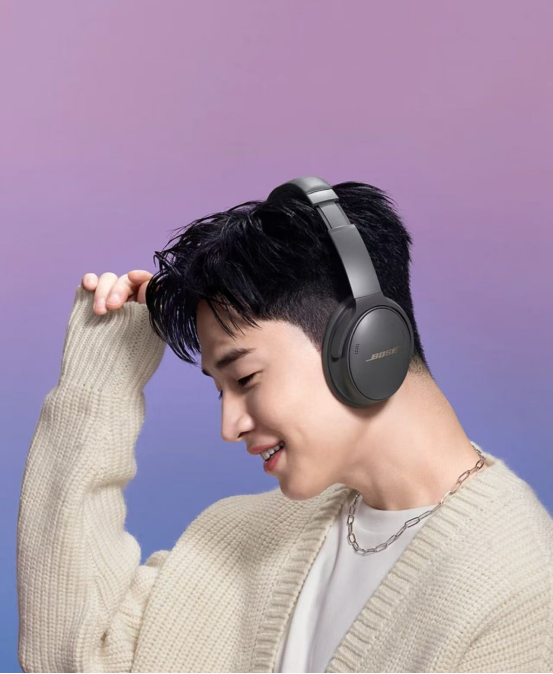 Bose QC45消噪耳机,机重240克,耳罩采用蛋白质皮革包裹记忆海绵,头梁伸缩范围大,支持折叠收纳,内置微型麦克风削弱噪音干扰。