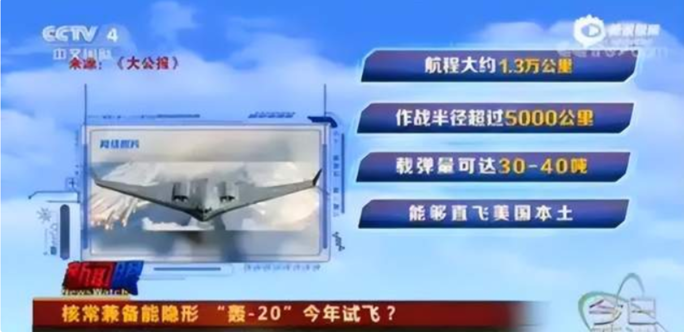 央视作为国内最权威的视听媒体,它所涉及的轰-20的相关报道,对于关注中国空军装备发展动态的广大网友来说,具备重大的参考价值。