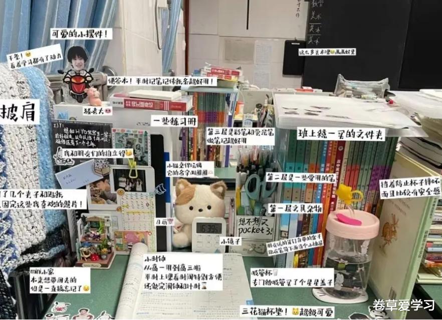 而这股精致的精致的风吹到了高中生课桌上,特别是一些爱干净,喜整洁的女生,开始布置起自己的课桌,还发到网上出了个指导说明。