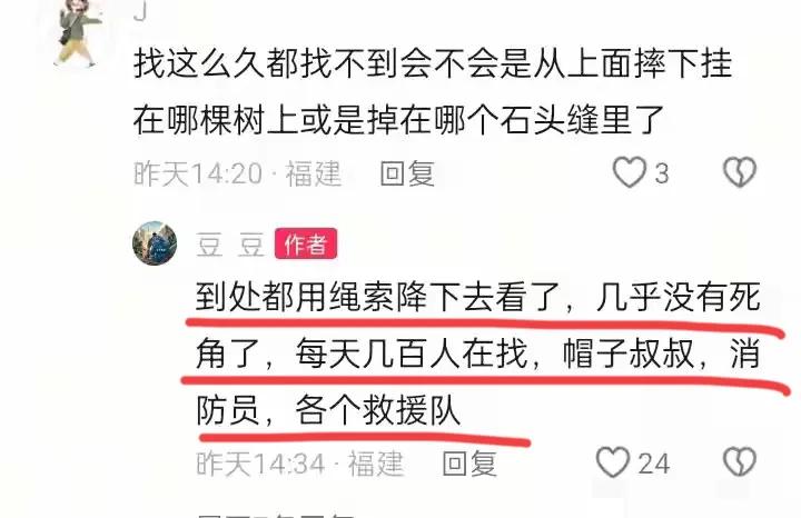 石谷解周边区域到处都是丛林,几座山都踩烂了,崖边也用绳索降下去看了,几乎没有死角了,到目前为止,每天都有6.7百名救援人员在进行搜救工作。