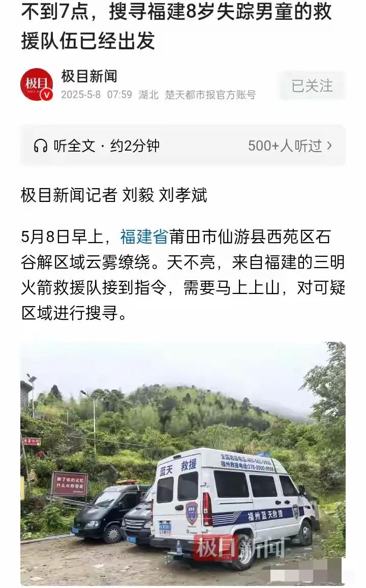 5月8日一早,福建三明火箭救援队已赶往现场,对可疑区域进行排查。