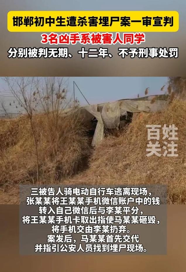 河北省邯郸市中级人民法院对未成年人故意杀人案进行了一审公开宣判。此案涉及三名被告人,其中张某某和李某因故意杀人罪分别被判处无期徒刑和有期徒刑十二年,而马某某则因某种原因依法不予刑事处罚。