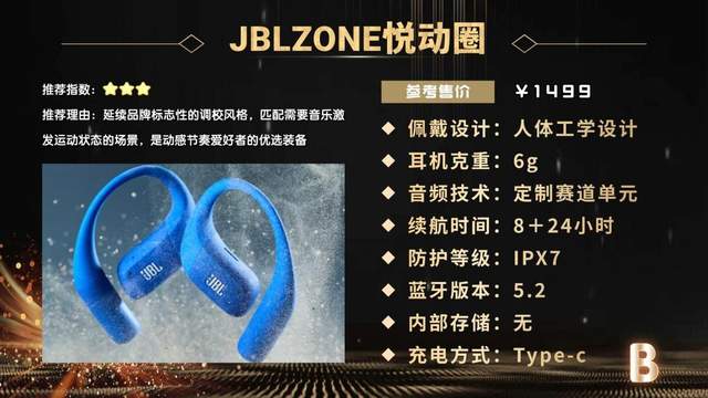 JBLZONE悦动圈延续品牌标志性动感调音风格,主打强劲低频,适合想用音乐提升运动状态的节奏爱好者。