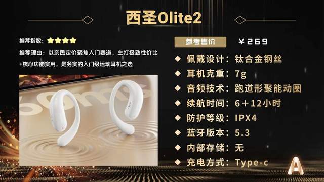 西圣Olite2主打入门级市场,以极低价格和实用核心功能为主打,精准满足健身新手与预算有限用户的需求,是一款务实型入门运动耳机。