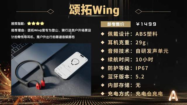 颂拓Wing是一款面向登山、骑行等专业户外场景打造的骨传导耳机,整体定位偏向硬核户外使用,是长期在外出行用户的可靠音频伙伴。