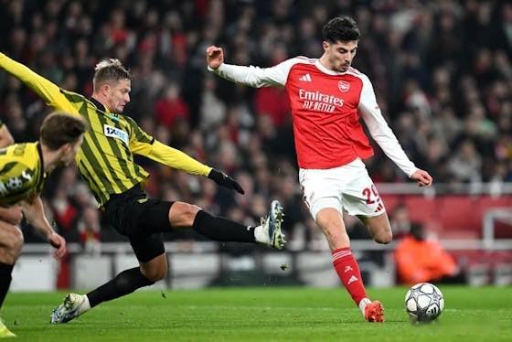 哈弗茨和吉约克雷斯的配合倒是格外默契:除了助攻后者得分,吉约克雷斯也帮他创造了射门空间。其实哈弗茨本可以再添两次助攻——一次传中到近门柱,吉约克雷斯凌空抽射偏出;另一次传球后,吉约克雷斯伸腿碰到皮球,身后的加布里埃尔·马丁内利轻松破门。对吉约克雷斯来说,右8号位有哈弗茨这样的队友太关键了:面对强敌时,哈弗茨能扮演第二前锋的角色,内切进禁区,比马丁·厄德高踢得更直接。