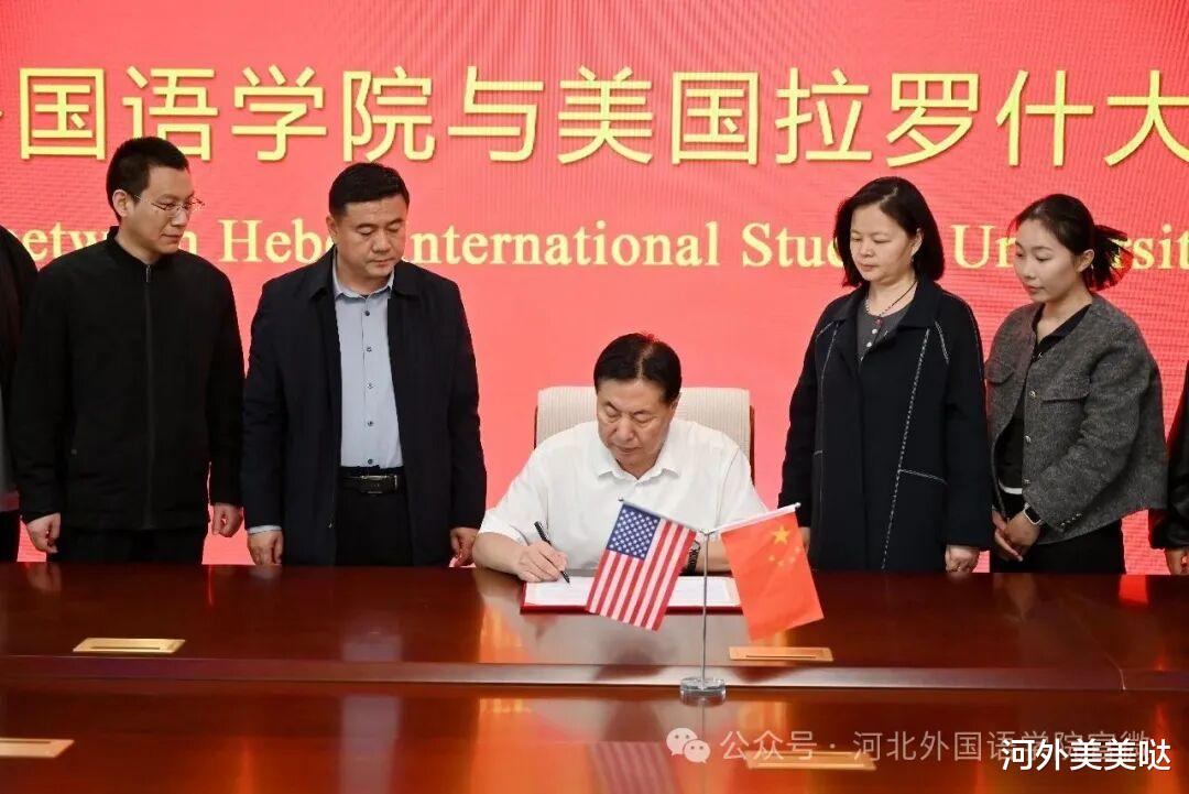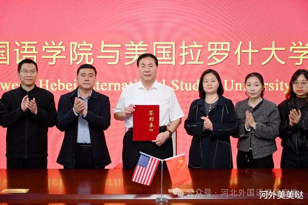 2026年3月31日,河北外国语学院与美国拉罗什大学(La Roche University)合作签约仪式隆重举行。河北外国语学院董事长、校长孙建忠院士出席仪式并在合作协议书上正式签字盖章,副校长陈伟、国际语言教育学院院长吴艳丽、国际语言教育学院外事负责人张嘉仪等领导及教师代表共同见证这一重要时刻。