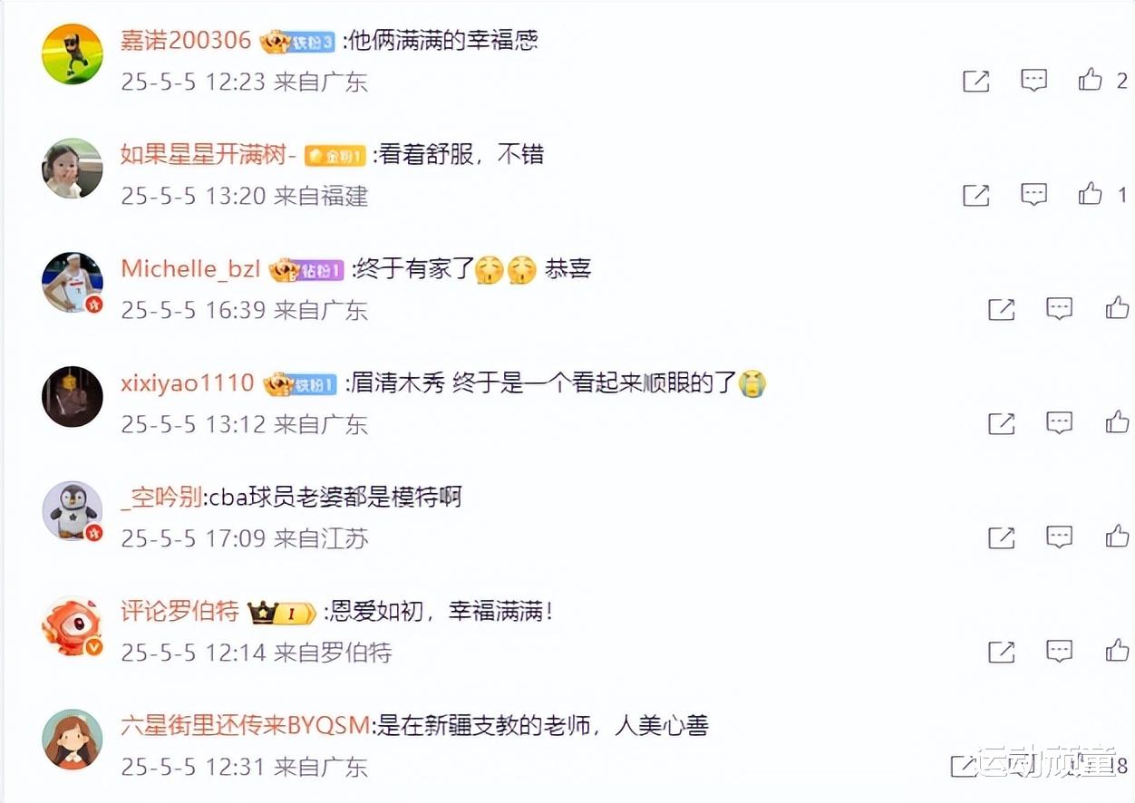 网友也纷纷恭喜李炎哲,并进行了热评,“支教的老师,人美心善”、“眉清目秀,看起来顺眼”、“终于有家了,恭喜”、“他俩满满的幸福感”。