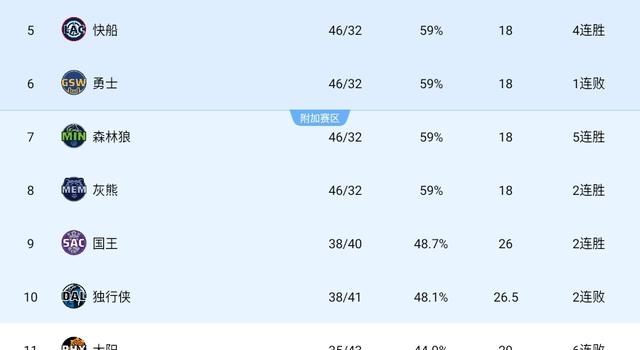 最近 NBA 西部的比赛,看得人有点迷糊。快船、勇士、森林狼、灰熊四支球队,齐刷刷打成了 46 胜 32 负。这情形,就像四个同学考了一样的分数,却因为小数点后几位排座位,第五到第八名来回打转。我每天打开手机看排名,都得揉好几下眼睛 —— 昨天快船第五,今天勇士第五,明天说不定森林狼又窜上来了,跟坐过山车似的,难怪有网友开玩笑:“NBA 该给西部弄个旋转排名榜,省得每天手动更新。”