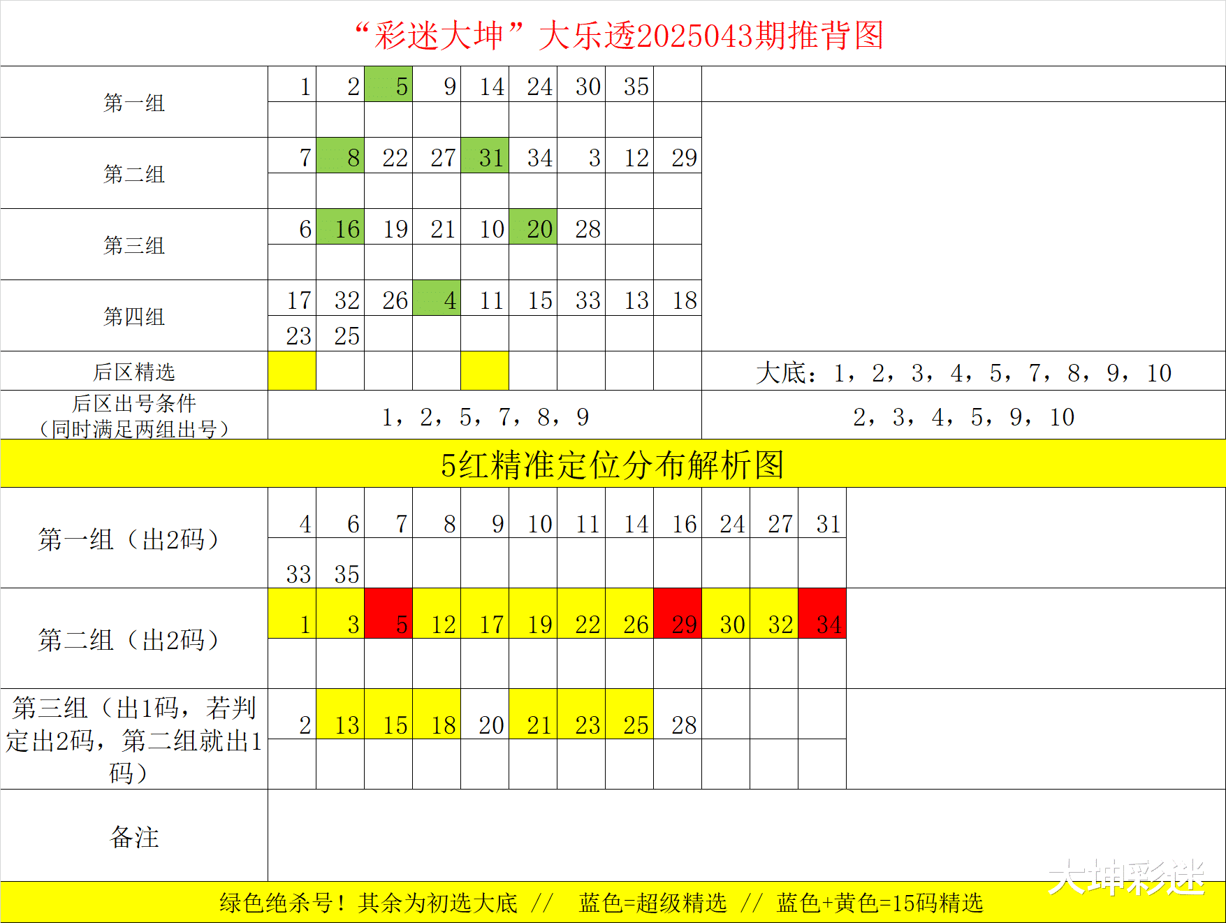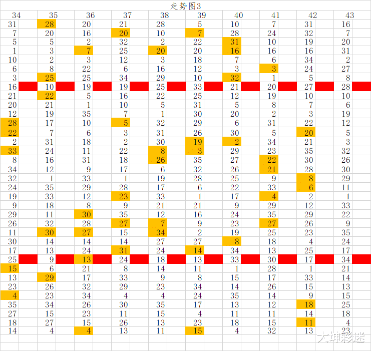 大乐透043期:独创大坤走势图,助你选号。