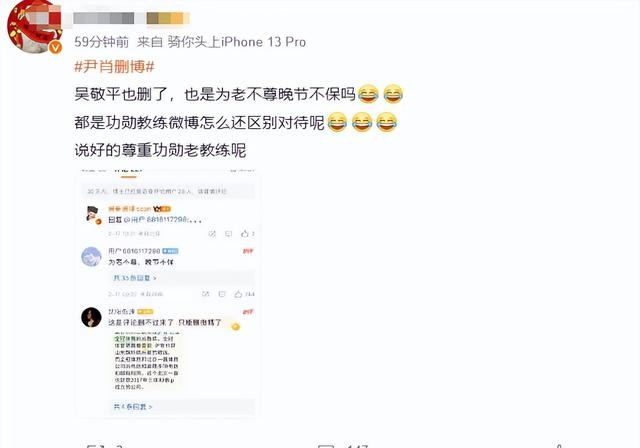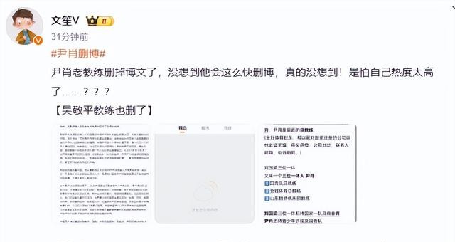 尹肖教练悄悄删掉了那条回应吴敬平的微博。