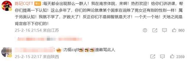 他直接在尹肖的微博评论区留言,明确表示支持吴敬平。