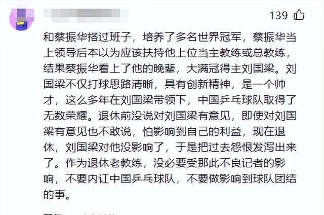 认为他的言论可能会进一步加剧国乒内部的矛盾。
