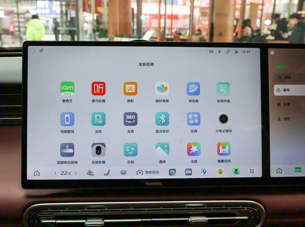 坐进车内之后,红旗HS6 PHEV的中控开始看齐诸多新势力,首先映入眼帘的就是中控台双液晶联屏,颇有一种“理想”等车型的既视感。而且为确保流畅度和功能体验,新车还将提供8295P座舱芯片,屏幕分辨率也达到2.5K,因此智能化效果也会令人眼前一亮。再就是做工和用料值得肯定,触手可及之处基本都是软性材质包覆,辅以较大面积皮质和亮饰条点缀,豪华氛围也在同级较为突出。