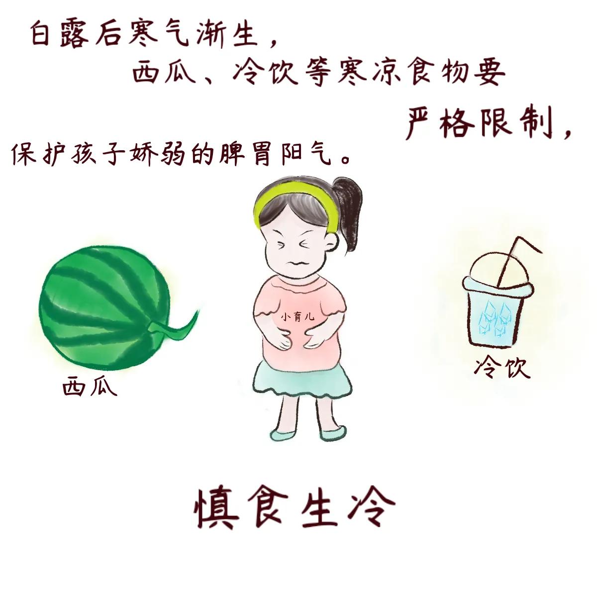 “白露勿露身”:俗话说“白露身不露”,一定要给孩子做好保暖,尤其是腹部、背部和脚部。睡觉时盖好被子,防止夜间着凉。