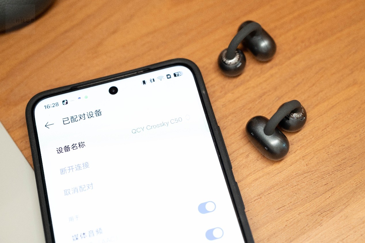 对于开放式耳机常见的漏音问题,QCY小耳球C50采用了“4.6°定向聚声结构”,官方数据说防漏音效果达到99.7%。实际使用中,在安静的办公室或图书馆,旁边的人基本听不到你耳机里的具体内容,只有凑很近才可能听到一点点微弱的声音。另外,“音量自适应”在通勤路上很实用,当环境噪音变大(比如进地铁站),能感觉到耳机声音自动有轻微提升,保证你能听清。日常通勤、办公、散步、轻运动时,它的听音清晰度是完全够用的。