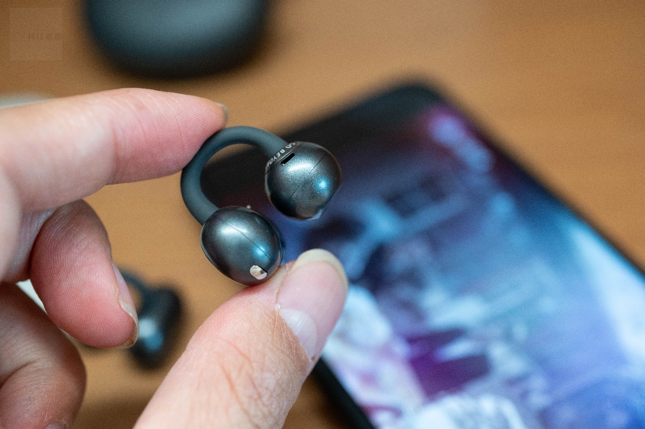 戴上后最直观的感觉就是“轻”和“稳”。日常走动、小跑甚至猛甩几下头,它都牢牢地挂在耳朵上,完全没有要掉下来的意思。最近用的时候,即便是戴上半天,耳朵也没有明显的胀痛或压迫感,舒适度在耳夹式耳机里算是相当出色的。它不分左右耳,随便拿起来就能戴,放回充电仓会自动识别校准,非常省心。