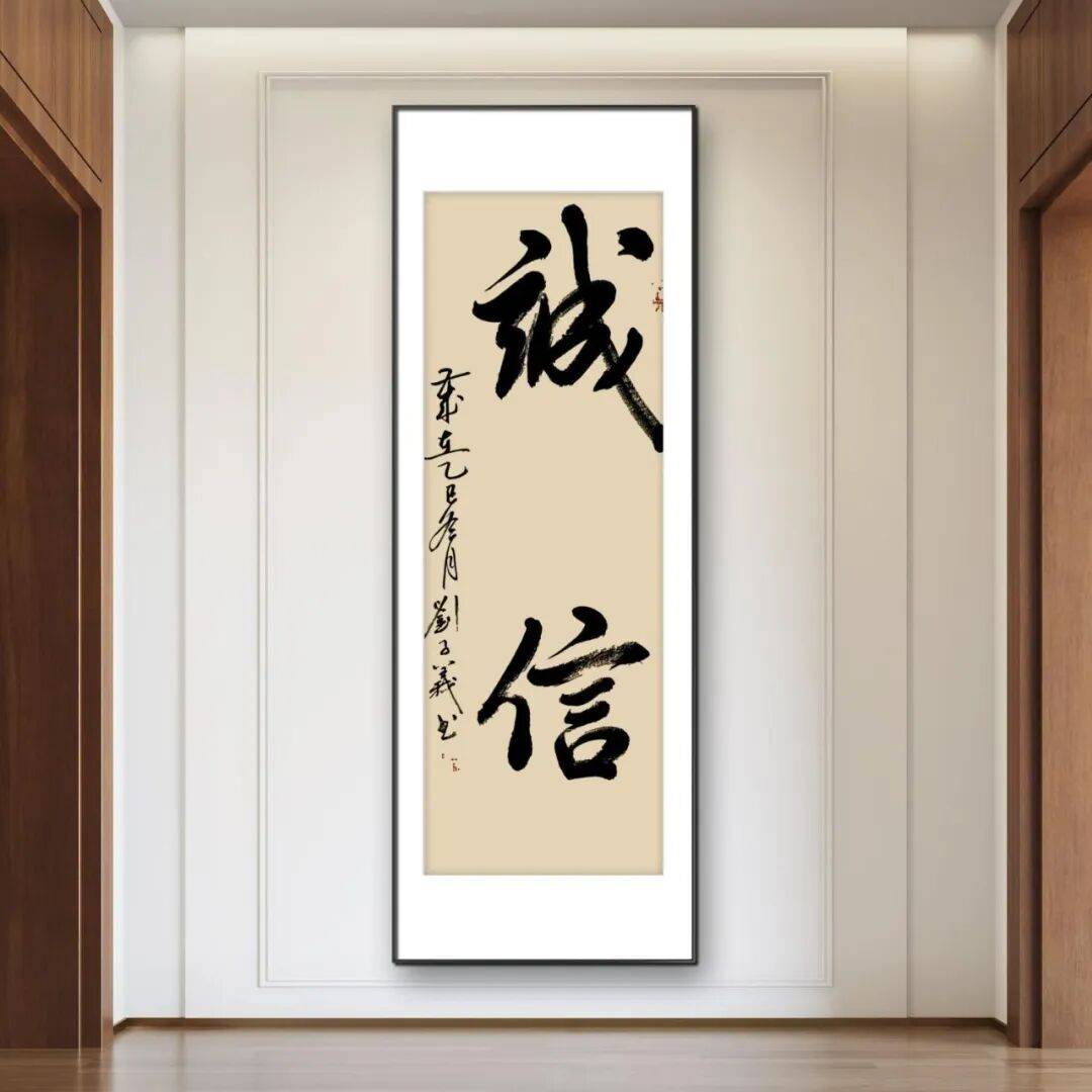 在刘子义先生的众多书法作品中,行楷榜书无疑是最具特色、最受广大书法爱好者喜爱与赞誉的。榜书,又称“大字”,因其字形硕大、气势磅礴,常用于题匾、刻石等,对创作者的笔墨控制能力、结构把握能力与整体驾驭能力都提出了极高的要求。行楷榜书则兼具楷书的严谨与行书的流畅,既要保证字形的端庄规范,又要体现出行书的灵动飘逸,创作难度极大。刘子义先生凭借扎实的笔墨功底与对书法艺术的深刻理解,在榜书创作领域独树一帜,形成了自身鲜明的艺术特色。