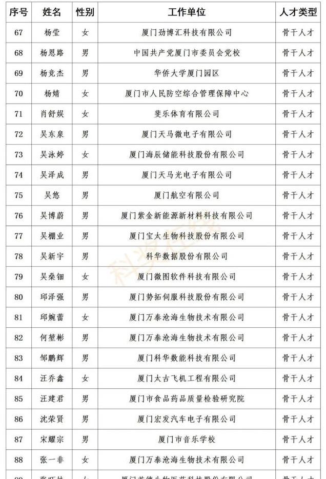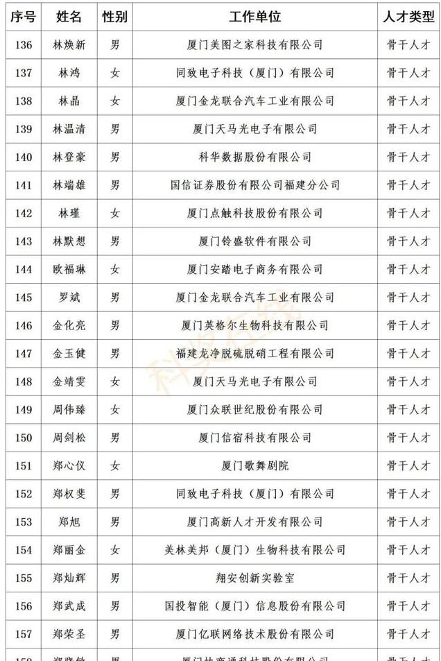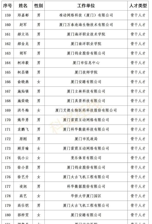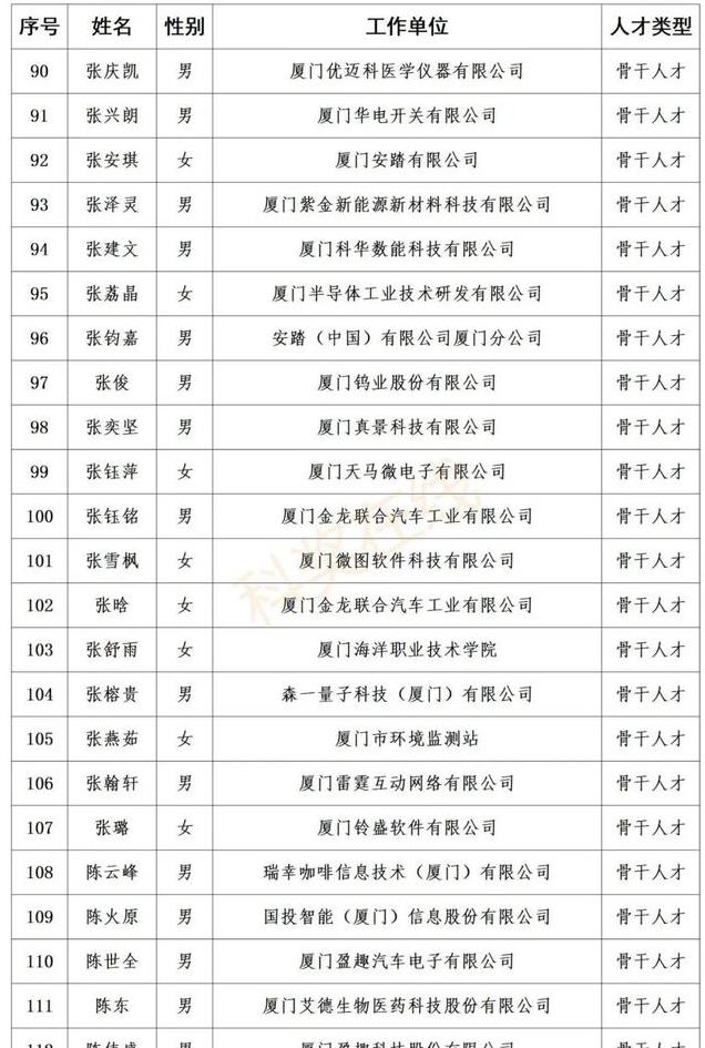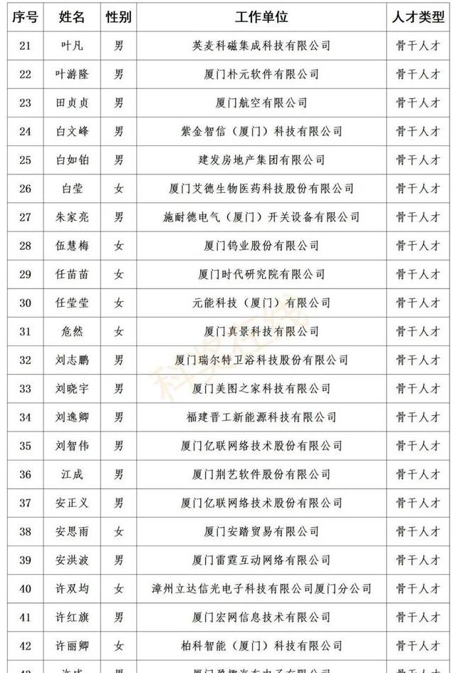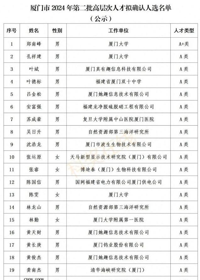 根据相关文件精神,现将拟确认的厦门市2024年第二批高层次及骨干人才人选名单予以公示:
