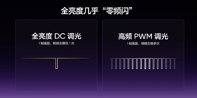 旗舰级全亮度 DC 调光加持,频闪控制远超高频 PWM 方案,全亮度区间近乎 “零频闪”;SVM 值最低可达 0.05,且避免亮度变化时的数值跳变,更通过莱茵 TÜV 无频闪认证,暗光用机也无负担。