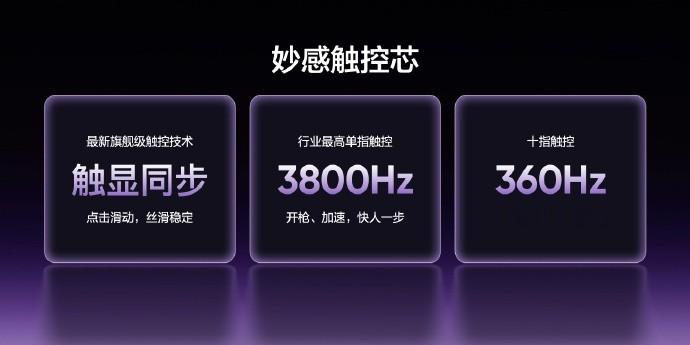 旗舰级触显同步技术精准对齐触控采样与画面显示,触控响应至高提升 8ms,点击滑动丝滑无拖,跟手度直接拉满;瞬时触控采样率高达 3800Hz,即便十指同时操作也能维持 360Hz 高采样,不管是 MOBA、FPS 的三指联动,还是音游的多指速点,都能精准响应不脱节。