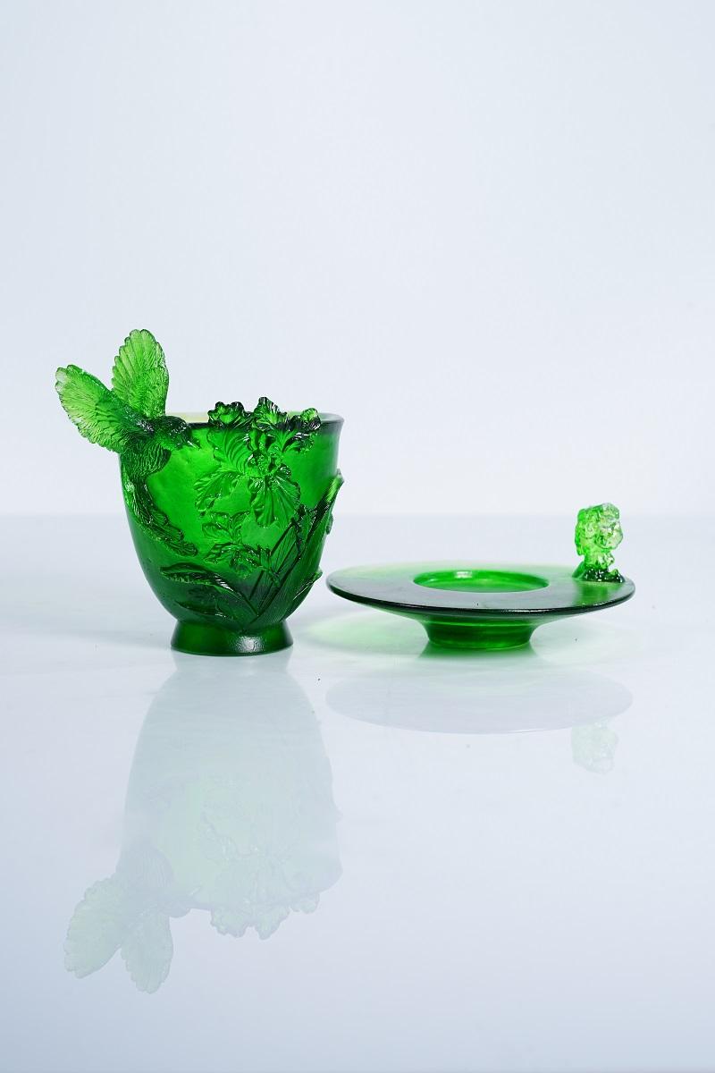 飞羽鸢尾杯沿用传统古法琉璃制作工艺,经选料、塑模、高温烧制、精细打磨等多道纯手工工序制成。每一件都独一无二,无重复纹理,原料甄选严苛,烧制温度精准把控,摒弃普通玻璃的冷硬,多了几分温润厚重,光线穿透时,琉璃质感通透,光影流转间尽显雅致。