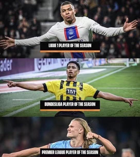 或许你在感慨当今足坛球员的身价溢价明显,但在后浪当家作主的足坛,也要习惯出现新的领军人物,本赛季的法甲最佳球员姆巴佩在2017年的转会费就达到了1.8亿欧元,本赛季的英超最佳球员哈兰德同样在多特蒙德完成三年磨一剑,在曼城缔造一系列纪录的他如今在憧憬欧冠决赛。2003年出生的贝林厄姆也有当仁不让的资本。