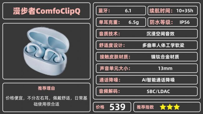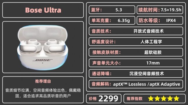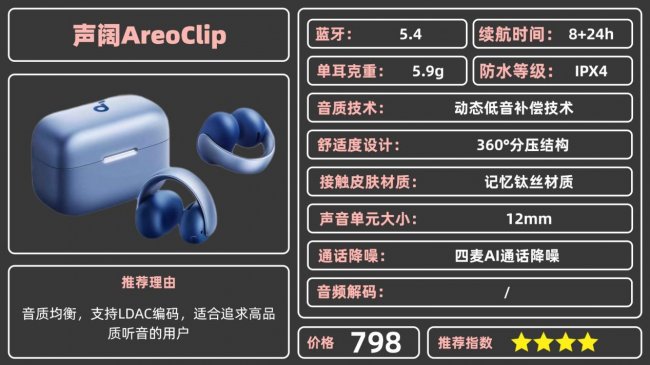 推荐理由:音质细节拉满,空间音频体验出色,佩戴稳固,适合追求高品质听音的用户