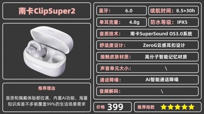 1、百元级别的黑马—南卡ClipSuper2