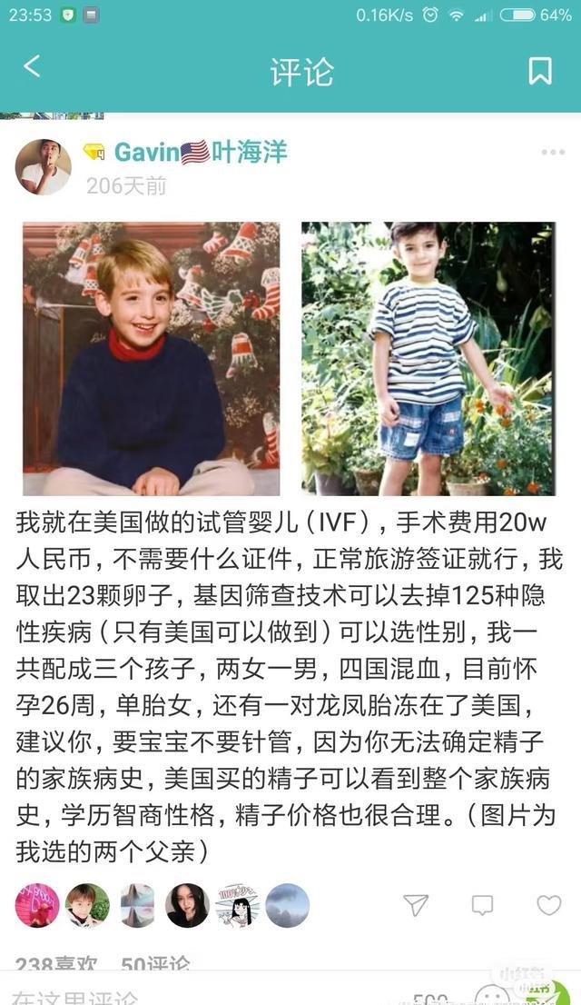 言称自己因为想要一个完整的家庭,但真爱难寻,所以做出了买精生子的决定,花费50万元前往美国人工受孕,生下自己的孩子。