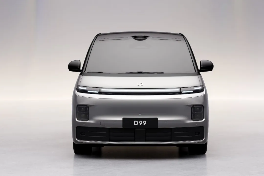 零跑D99延续了D系列家族式设计,却处处藏着“科技豪华感”。前脸的三段式LED日间行车灯辨识度拉满,下方贯穿式哑光银饰板横向拉伸视觉宽度,搭配能智能调节开合的AGS主动进气格栅,兼顾了颜值与散热效率。车身侧面线条干净流畅,隐藏式门把手、“大饼样式”轮毂与黑化A/B/C/D柱营造悬浮式车顶效果,纯平侧窗设计优化风阻的同时提升视野通透性。车尾,采用名为星河悦动的尾灯组,搭载了ISD智慧交互灯幕,拥有8260颗LED光点,提升了车尾的科技感。