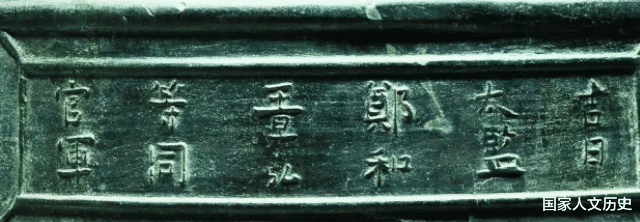 郑和铜钟(局部),铭文为“吉日,太监郑和、王景弘等同官军”。从姓名排序上看,王景弘地位仅次于郑和