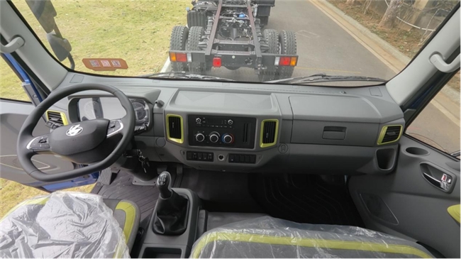 承载方面,车辆采用231双层大梁一次冲压成型,抗弯抗扭能力大幅提升,满载过坑不变形、不疲软。前桥9片板簧保障转向支撑刚性,后桥10+8片主副簧设计则兼顾空载舒适与重载稳定。3.2T前桥与8T窄后桥的强强联合,将承载力直接拉满。配合扎实耐用的底盘结构与精湛工艺,车辆故障率更低,卡友运营更省心。