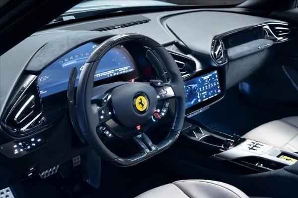 走进车内,全新法拉利12Cilindri将推出多种不同内饰配色,分别营造出不同的座舱氛围;同时中控台整体设计层次感十分鲜明,分别搭配15.6英寸仪表盘、10.25英寸中控屏幕以及8.8英寸乘客显示屏,三块屏幕整体形成了全新的人机交互界面,同时还标配电容式方向盘,并且搭载基于Apple CarPlay与Android Auto移动互联系统开发的车机系统,科技感十足;除此之外,新车还匹配与Burmester合作开发的15扬声器音响系统,营造出更加奢华的氛围。
