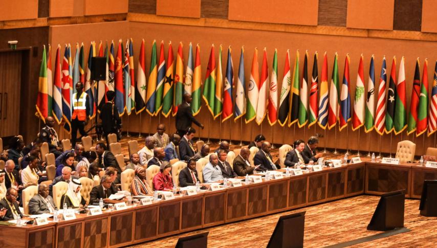 内贾德以东道主身份担任秘书长,站在第三世界国家的最前排。