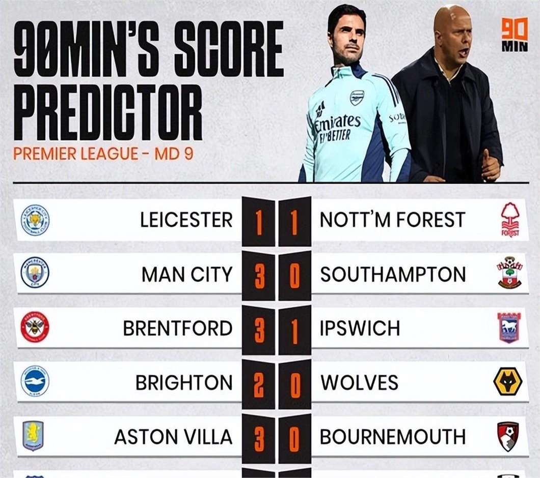 除了OPTA和保罗-默森的预测之外,90 MIN网站也给出了本轮英超的比分预测。在莱斯特城与诺丁汉森林的比赛中,90 MIN预测的结果是莱斯特城1-1战平诺丁汉森林,然而实际结果却是莱斯特城1-3失利。在其他几场比赛中,90 MIN的预测结果也有偏差。