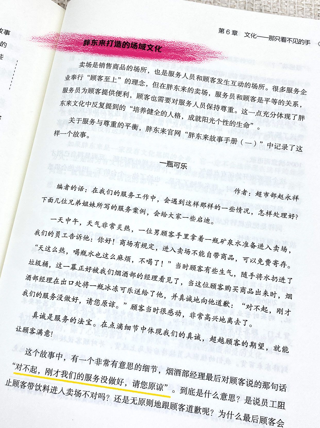 进过胖东来的人都会觉得胖东来跟其他超市有点不一样。不一样在哪?不是在装修上、也不是在商品上,而是在文化上。例如,胖东来对待顾客和参访者的态度、胖东来处理突发事件的方法等,这些东西无不体现着胖东来独特的文化