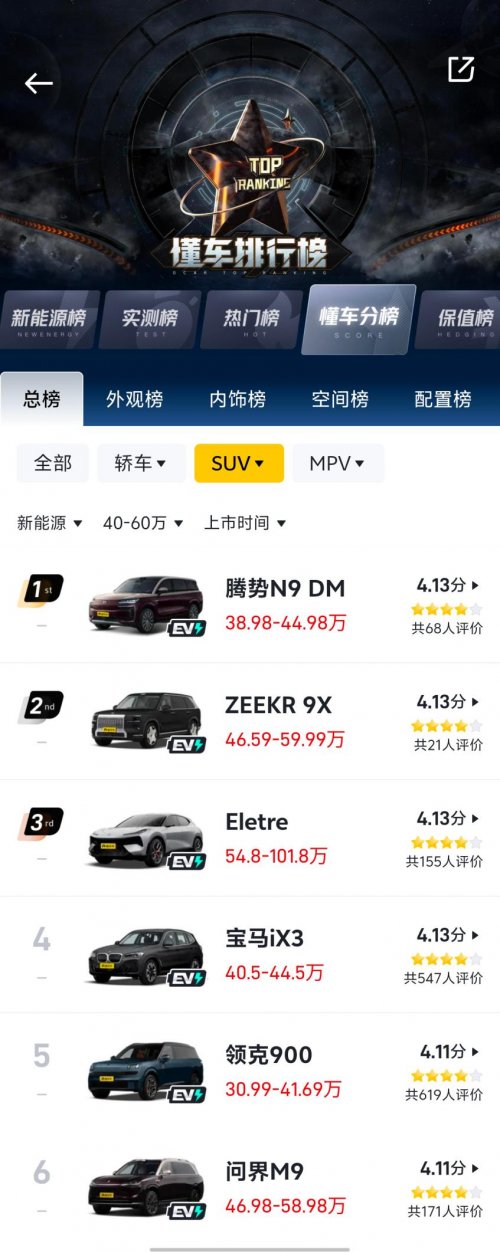 最近极氪9X拿下汽车之家“大型SUV”口碑榜第一,以及懂车帝“40-60万级”关注度榜单第一,这事儿值得细品。大家都明白