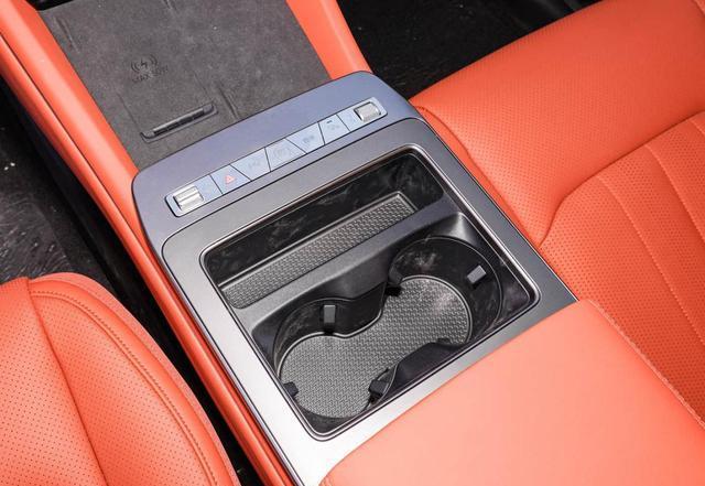 内饰和汉L差不多,科技感满满,还多了个车载冰箱,夏天冰个饮料,简直不要太舒服。