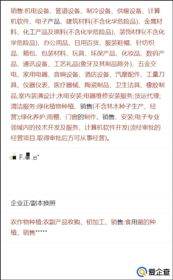 这家公司从2013年成立,前三年是干农副产品加工的。2016年突然转型进军电子设备领域。此后一路“斜杠青年”:绿化养护、货运代理、装潢设计、机电采购……什么火干什么。