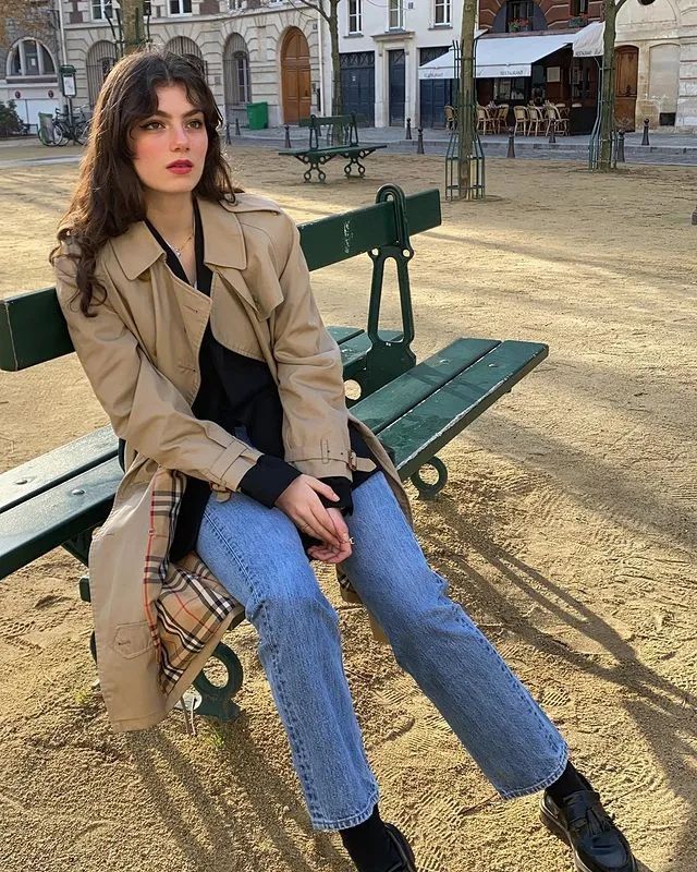 经典的丹宁牛仔套装,在穿出休闲感的同时又更有复古韵味,在叠穿一件风衣,层次感升级。