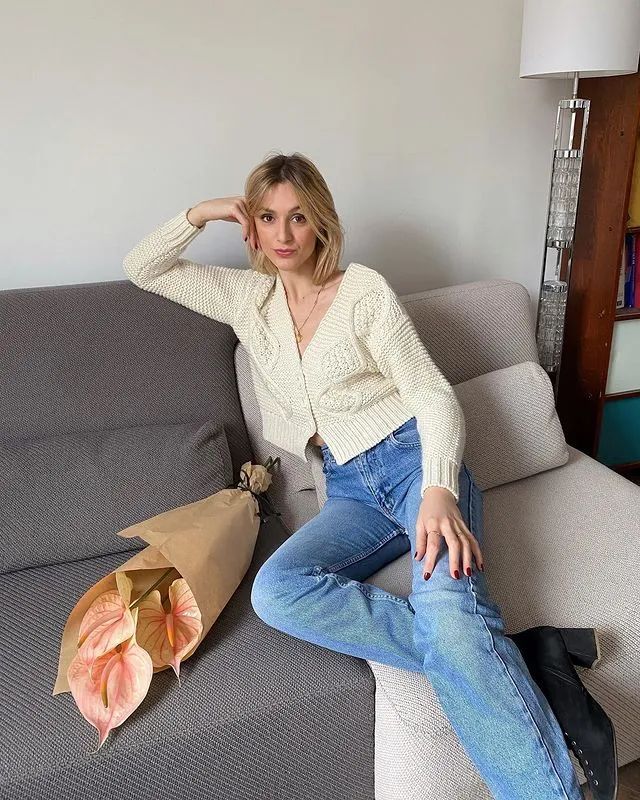 在春日很适合尝试浪漫慵懒的搭配,用针织开衫来搭配牛仔裤,温柔舒服又自在。