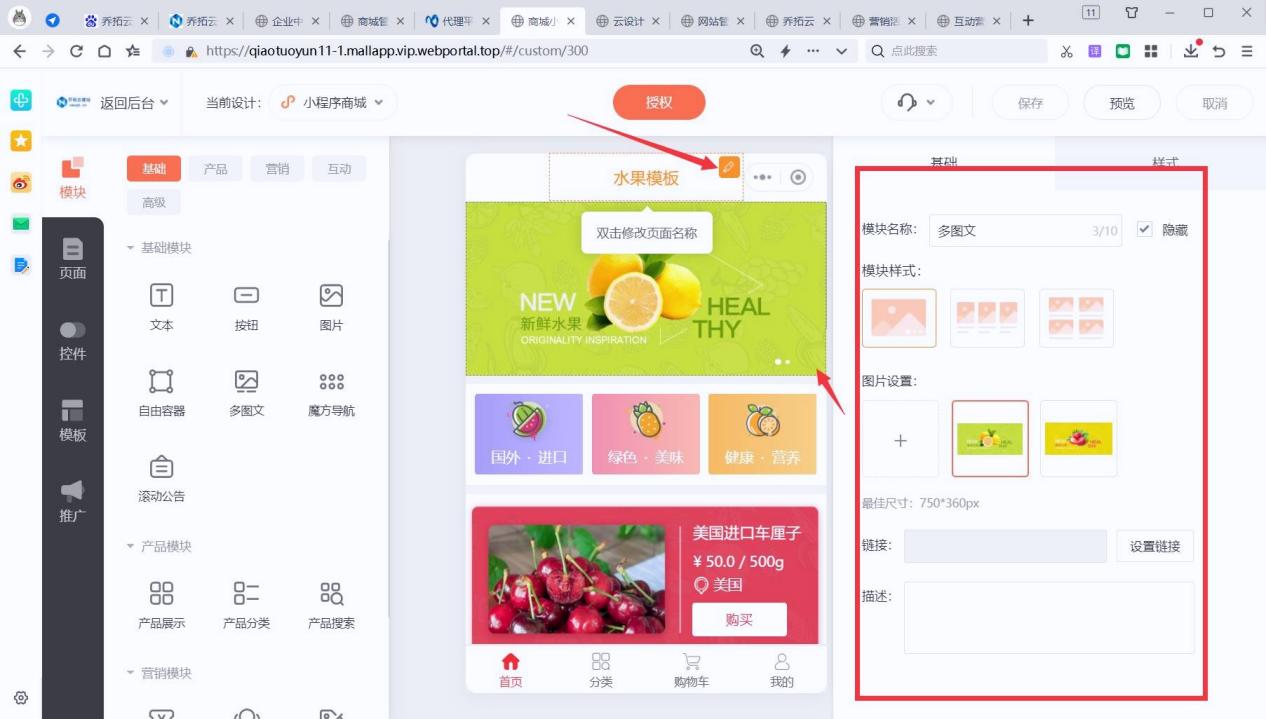 核心定位:模板资源丰富,侧重生鲜商品展示,基础零售运营可支撑