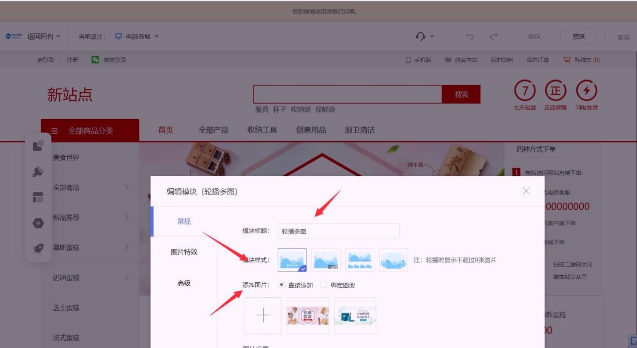 生鲜适配短板:无专门的生鲜模板,需手动修改通用模板风格;无临期商品批量促销功能,库存预警仅支持电脑端查看,无法及时响应生鲜短保需求。