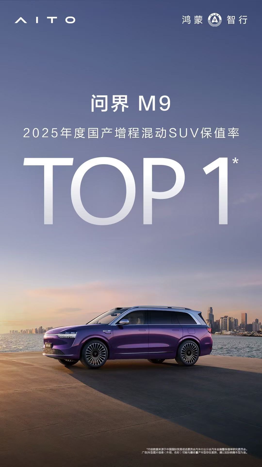 市场的认可是最客观的试金石。问界M9已用实力赢得双重背书:在真实用户层面,胡兵、罗振宇等各界翘楚的亲身实证,是对其产品力最具说服力的展示;在资产价值层面,它成为2025年度国产增程混动SUV保值率TOP1,并已连续四个月位居插混(含增程)车型保值率榜首,证明了其在市场的硬通货属性。