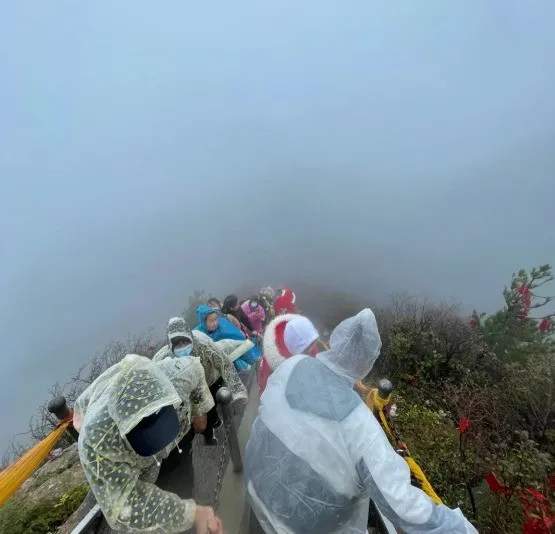 会当凌绝顶,一览众山小,但是前提是晴天啊!这大阴天的,雾蒙蒙啥都看不到,简直就是一幅水墨画啊……这是要去看云海吗?不,这是去体验白内障的感受的