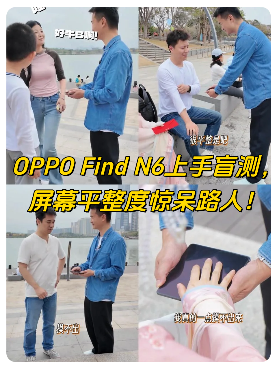 更绝的是OPPO周意保深圳街头那个盲测,让路人闭着眼摸内屏判断折叠方向,大多数人都摸错,平整度直接惊呆一众路人,我想这才是真正的“手感无痕”吧!
